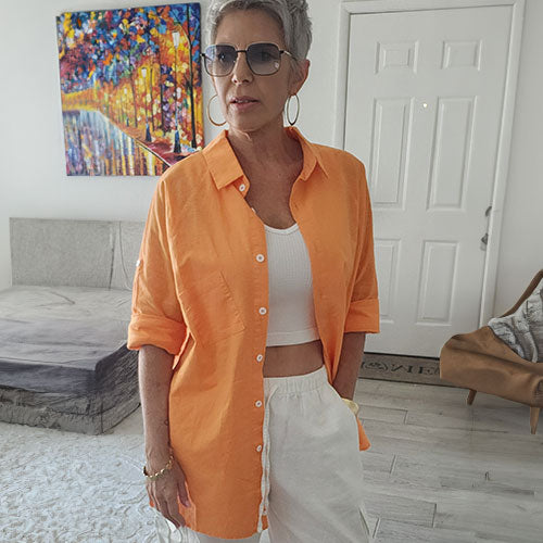 "I am in love with this Oversized Shirt. The fit is just perfect – not too tight, not too baggy. I feel so effortlessly chic whenever I slip it on, and the best part? I can style it in 5 different ways without feeling like I'm repeating my outfit!"