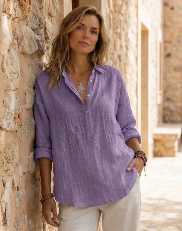 This blouse is everything I hoped it would be and more. The linen feels incredibly light and breathable, but still has that rich, textured quality that makes it feel elevated. I’m 38.5" bust, 32" waist, and 36" hips, and the size L fits perfectly.
