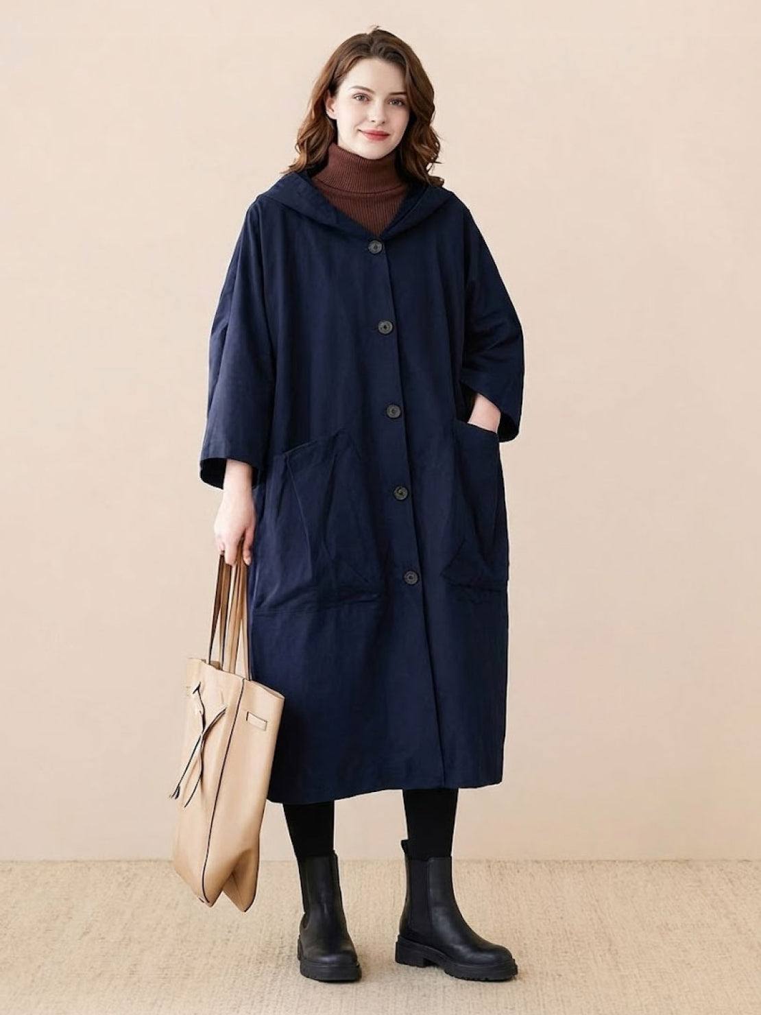 The coat's oversized design is perfect for layering, ensuring you have ample space to wear it over sweaters or other thick garments comfortably.