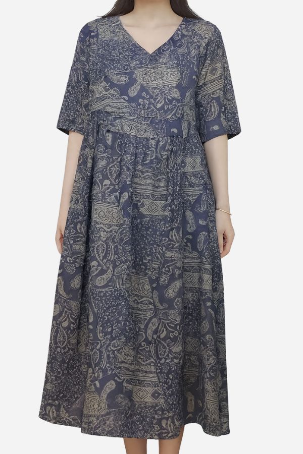 Beachside Bookstore Cotton Linen Midi Dress