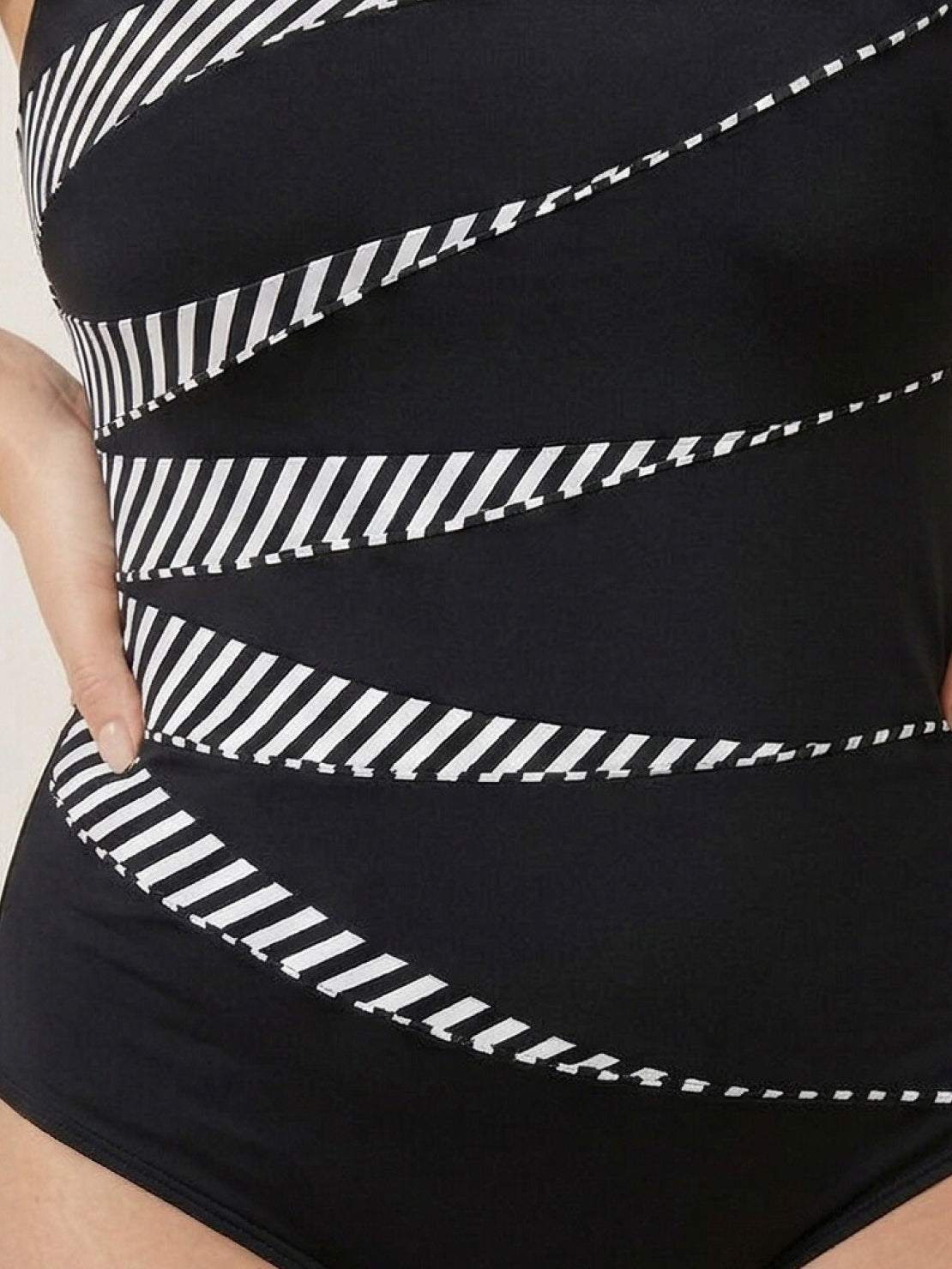 The fabric is stretchy and holds its shape in water. While it is not a performance racing suit, it works well for recreational swimming, water parks, and active beach use.